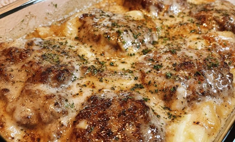 This Amish Hamburger Steak Bake is a hearty and comforting meal that’s perfect for a weeknight dinner. The juicy hamburger steaks are smothered in a creamy mushroom sauce, making it a delicious and satisfying dish.