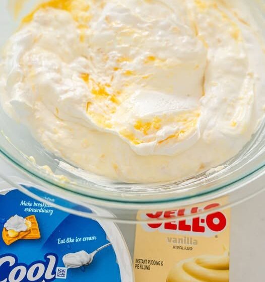 3. Make frosting: In another bowl, fold together whipped topping, crushed pineapple (with juice), and vanilla pudding mix until smooth and creamy.