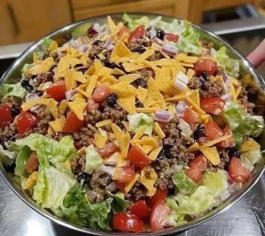 Add Beef & Doritos: Add the seasoned ground beef to the salad mixture and toss to combine. Just before serving, add the crushed Doritos to maintain their crunch.