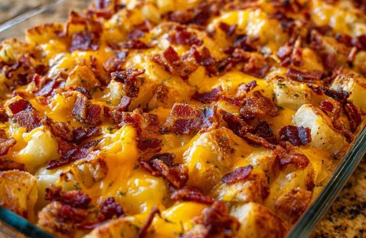 This Oven-Baked Loaded Potato Casserole is the ultimate side dish, bringing all the comforting flavors of a loaded baked potato into a single, shareable dish. Golden-brown roasted potatoes are tossed with crispy bacon, tangy sour cream, and shredded cheddar cheese, then baked until hot and bubbly. It’s a perfect addition to a holiday meal, a barbecue, or a hearty family dinner.