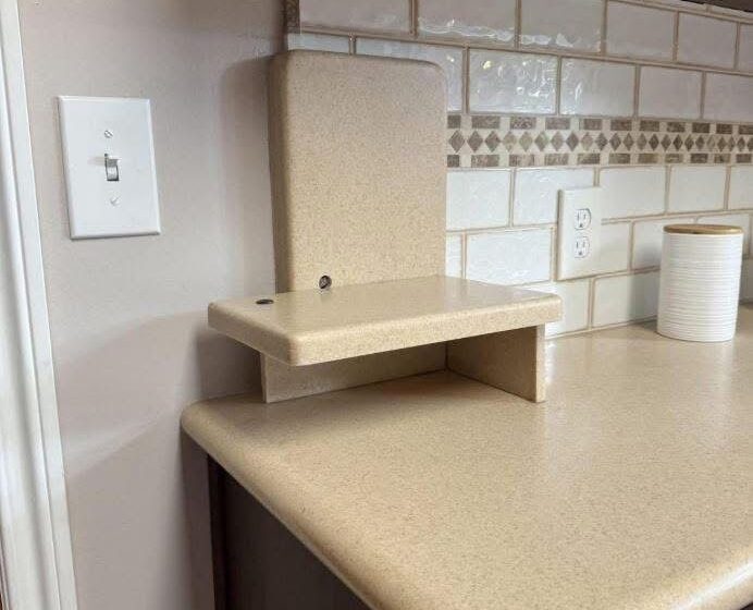 You walk into a beautifully designed kitchen and spot an unusual, custom-built structure rising from the countertop—seamlessly matched with the same surface material. It’s compact, hinged, and looks almost like a small riser shelf. Your first question? “What is this thing?”